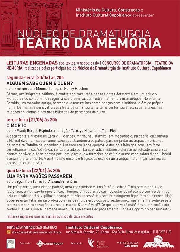 3. Teatro da Memória Contest winner as an author of The Death – Provisional Title. 2016. São Paulo. Brazil.